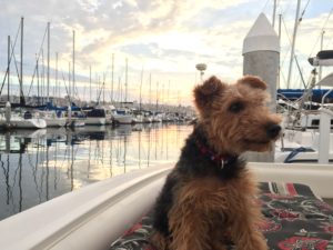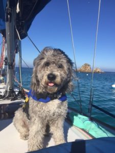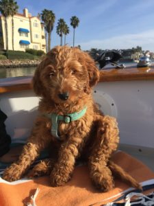 A 4-month-old goldendoodle, Cherry arrived from Indiana in January 2018. She now calls sunny Channel Islands Harbor her home and loves sitting on the aft deck of her owner Luke’s 30-foot Willard Vega. Cherry’s new family looks forward to making memories with her!