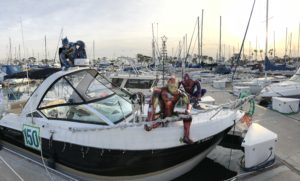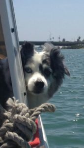 Preparation for the holiday boating parades is a big deal at any harbor. Boulder, a border collie mix, was onboard to help his family arrange decorations for the Dana Point Boat Parade of Lights in 2017.