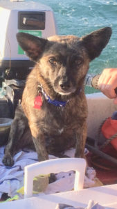 A three-year-old “mega mutt,” Hank enjoys his very first voyage aboard a 40-foot Beneteau on Emerald Bay. Synergy, the vessel, is out of Cabrillo Beach Yacht Club. Hank is sure to be a seasoned seafarer before long!