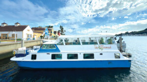 Captain Jim D’Ambrosio in my “office” reading The Log before my flight to SAN (San Diego) to Captain our Carver Voyager 570 into the SAN Diego Bay,” said Captain D’Ambrosio in an email to the Log.