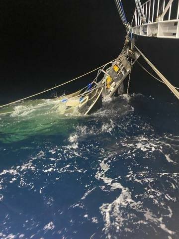 As it turns out, the fishing boat the crew pulled up belonged to two fishermen who radio the Coast Guard on Aug. 23 reporting they were sinking.