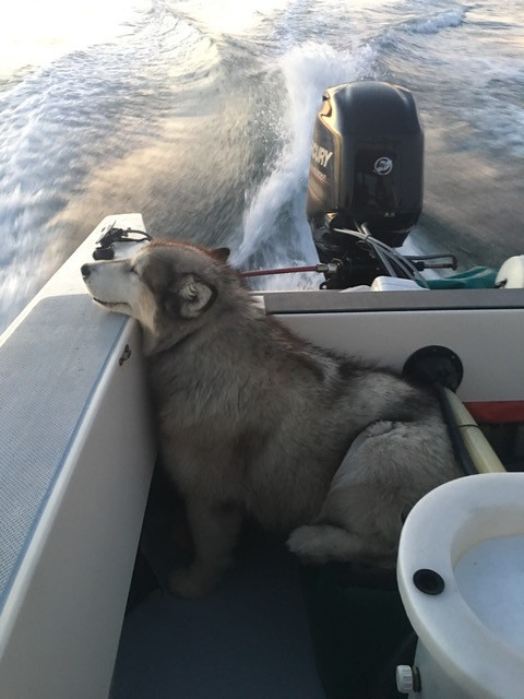 Chocolate Lab Tug, chills out in style aboard his paw-rents whaler in Alamitos Bay. “Tug chilling on the Whaler in Alamitos Bay!” said the submission from the Utterback family.