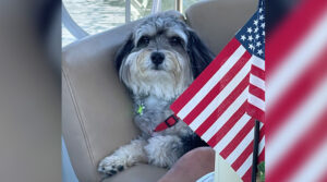 Chopper is 4.5 years old and a Mini Aussie Doodle, so smart, soft, and a harbor favorite.”