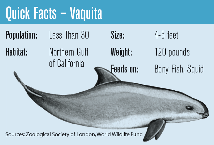 “The vaquita population declined 90 percent between 2011 and 2016, leaving the population at an estimated 30 individuals,” the magazine’s feature story on vaquitas stated. “As we continue to witness this decline and legal fishing activities are suspended, the government struggles to control totoaba poaching and its illegal trade.