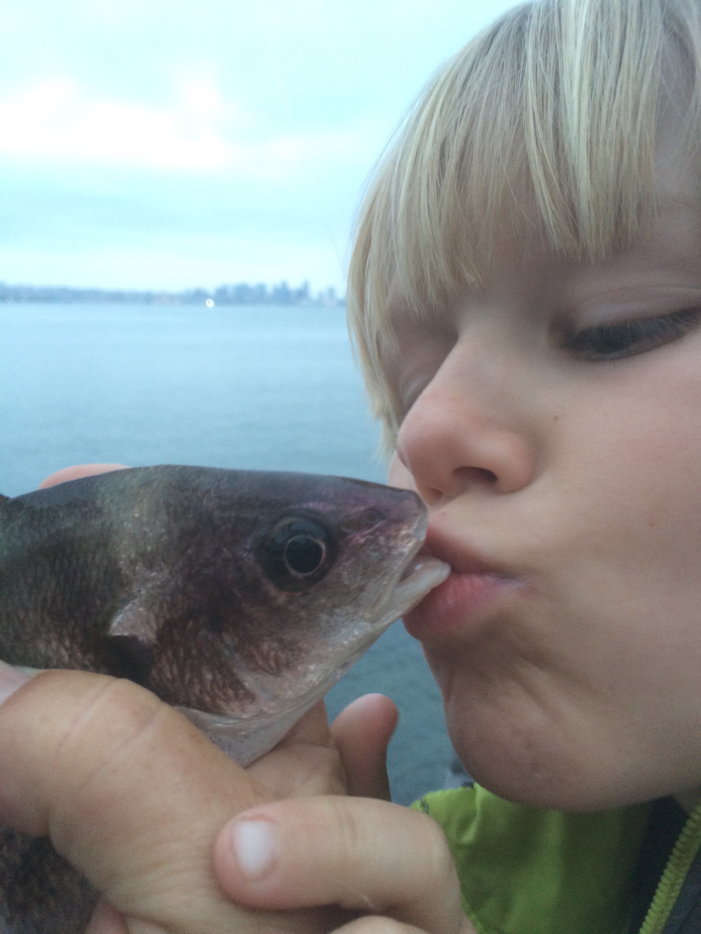 This is 8 year old Zoey Deason kissing one of her MANY catches on the Sea Star out of Oceanside, CA on Feb. 16th 2015