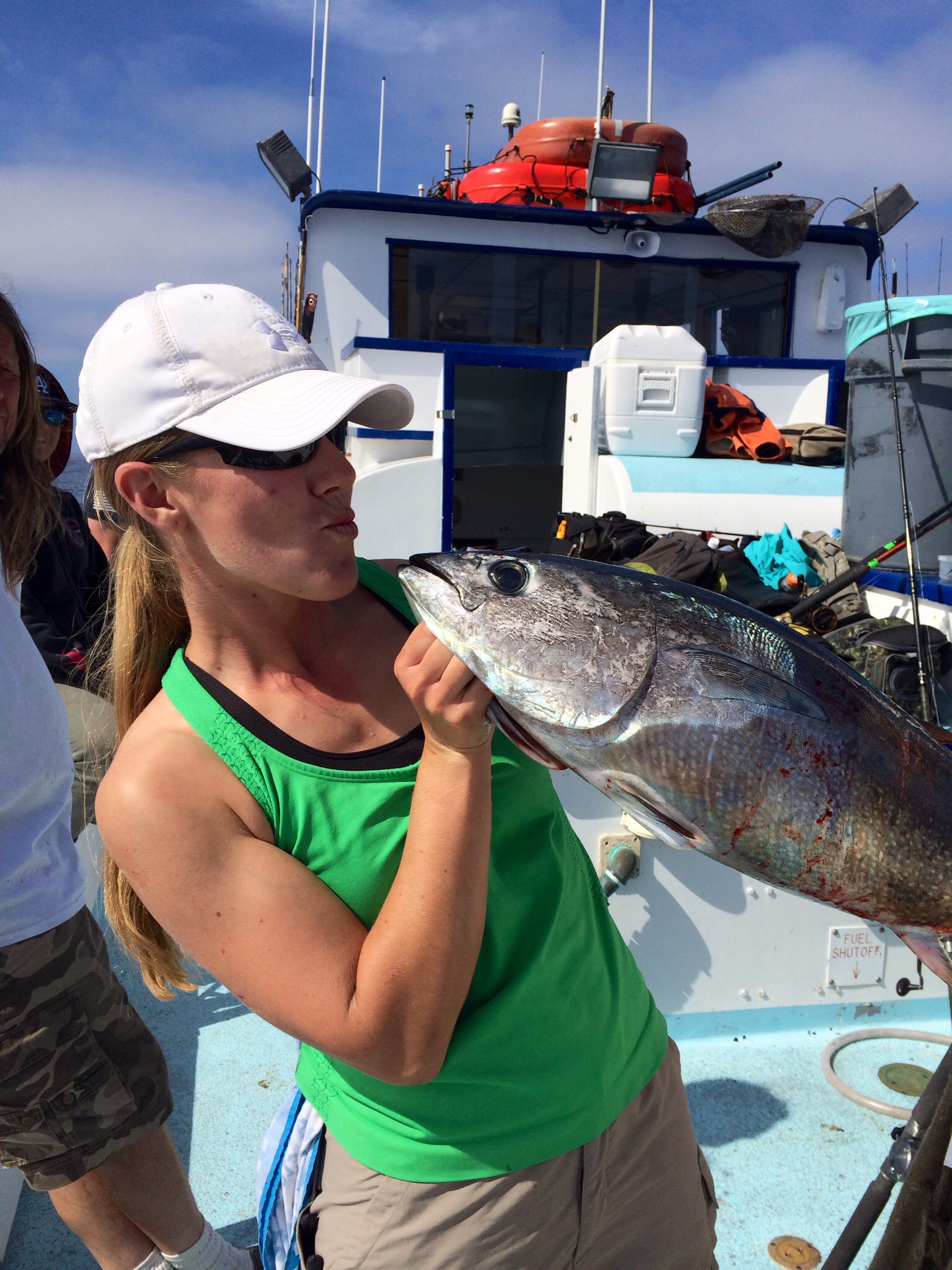 This is my wife Terri Lee Ray with her first Yellowfin Tuna aboard Cortez Sportfishing from Seaforth San Diego last year.