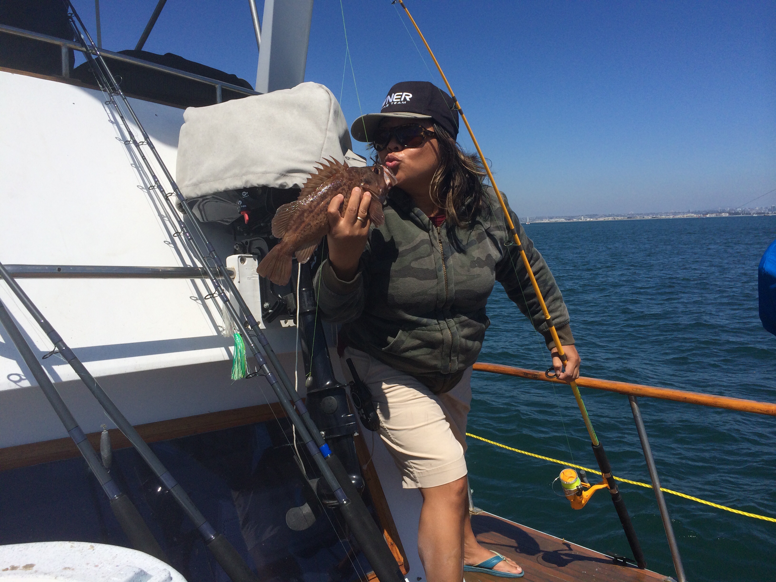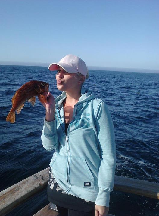 Smooches – Lacy Spear aboard the Seabiscuit out of Channel Islands Harbor in Ventura, Calif.