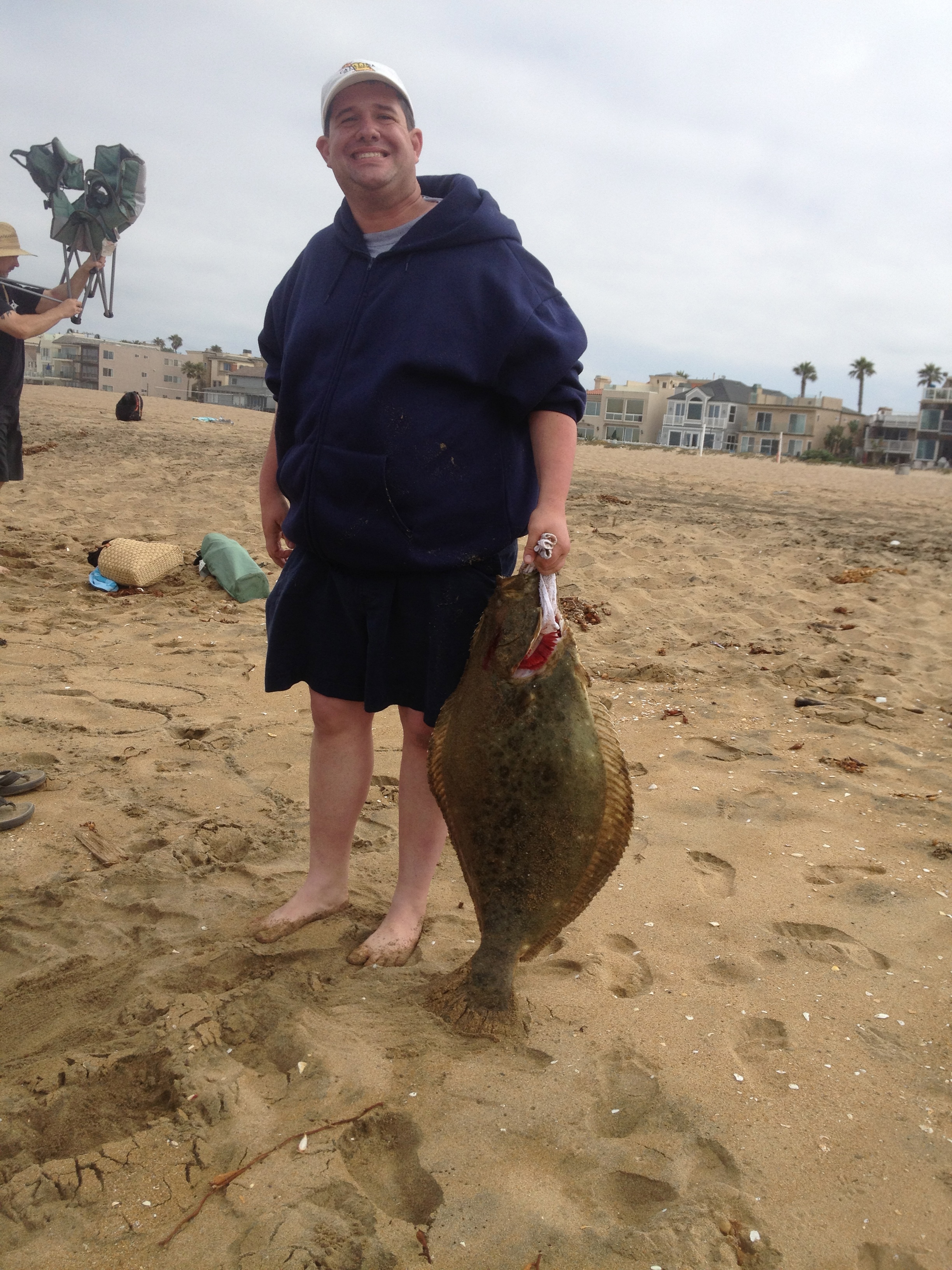 25 pound 38 inch Halibut. Caught on a Lugg Worm in the surf at Surfside Ca.