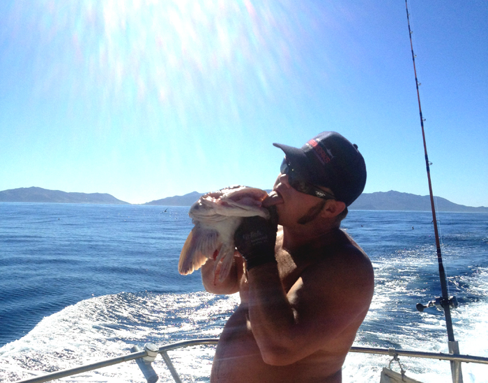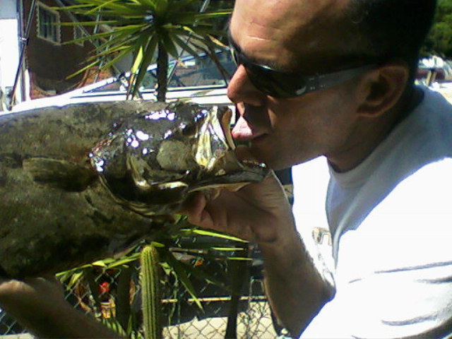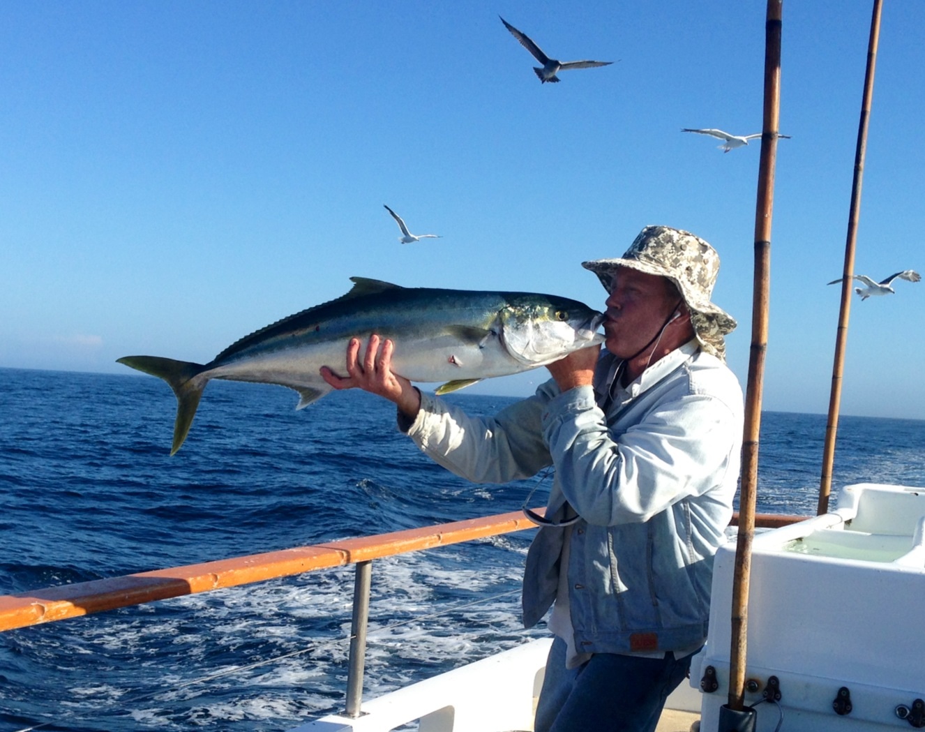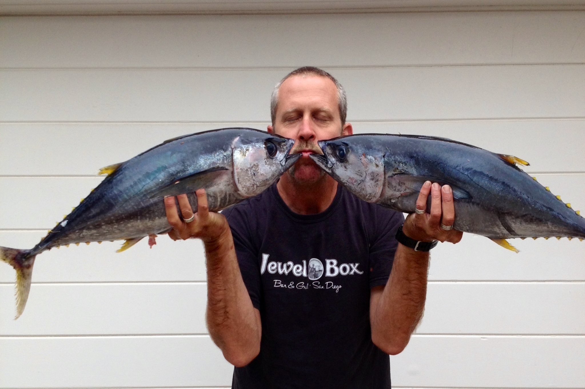 Bob Fillipelli gets fresh with a BFT caught at the tuna pens on Sunday 8-26. We had limits of BFT, YFT , Dorado and YT fishing on the private yacht, Saltfever.