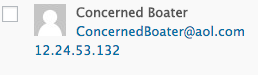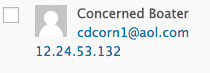 There is a comment from Concerned Boater posted on an article penned by The Log’s former staff writer, Devon Warren-Kachelein. The comment was posted on June 3 at 2:41 p.m. on an article headlined, “Orange County’s Docks: A Tale of Two Maritime Parking Scenes.” The email address associated with this comment by Concerned Boater is [email protected]; the IP address attached to the email is 12.24.53.132 – the same location as the comment referenced in the previous paragraph.