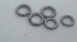 - Split Rings: Split rings, available in various sizes to match different jig types and styles, are used to attach hooks and hardware to jigs.