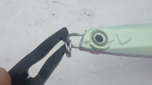 Using split ring pliers makes rigging much easier. These specialized pliers have a hooked tip that helps separate the split ring, making it simple to attach the hooks to the jig. Your local tackle shop can help you select the right sizes for your jigs and hardware.