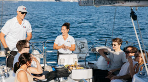 Guests can also choose their level of involvement. “If someone wants to sit back, kick their feet up, and just enjoy the ride, that’s totally fine,” Muir said. “But if you’re curious about sailing, our captains love getting people involved. You can steer, trim the sails, ask a million questions—we’re all for it.”