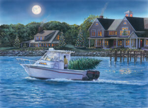 That creative inspiration begins right at home. “It’s hard not to be influenced by the coast living in Rhode Island,” said Scott. “But I have the opportunity to sail all over the country and the islands and gather reference for future designs. We take the reference material and develop a concept. We discuss our concept with an artist and create an original piece of art. Most of our art is watercolor. Our graphic artist takes the original art and creates the finished holiday card print file. All printing and packaging takes place in Rhode Island.”
