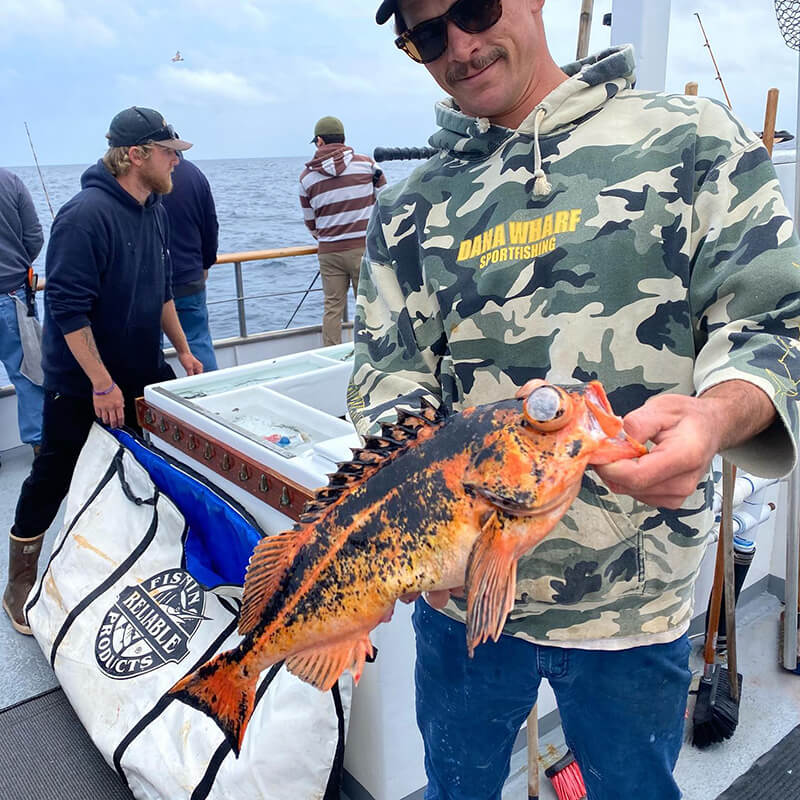 “Check out this cool looking coloration on this bank rockfish! Every once in a while we see some super cool looking color differences in different fish we catch! #danawharf @danapointharbor”