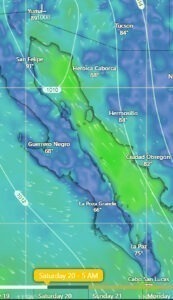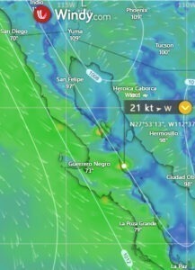 When prevailing Northwesterlies reach 20 knots or more, they can bridge a few infamous low and narrow spots or gaps atop Baja’s rugged spine – depending also on how northerly or westerly direction they blow.