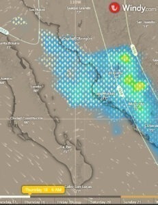If it’s an average to deep low, like 1010 millibars, its effect starts in the north end of the Gulf of California around Puerto Penasco or San Felipe, then continues sucking from the Midriff Islands and on down from San Carlos and Santa Rosalia. A really strong Yuma Low can eventually draw hot air up from as far south as La Paz and Mazatlan.